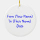 Lightweight, smooth, pure white ornament with nice sheen. Perfect size to be seen from across the room ... and to attract closer inspection! Price was great for ordering enough for the whole family! Clear, bold black design just as requested. Matches the order exactly. Just so nice!