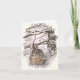 This thank you card features a typical winter scene: a sweet brown cottontail bunny rabbit with big ears is huddled under a pine tree seeking shelter from the snow. A smaller bunny is inside. The text simply reads: Thank You! It can be customized to suit your needs.