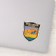 Snow Canyon State Park artwork design. The park features a canyon carved from the red and white Navajo sandstone of the Red Mountains, as well as the extinct Santa Clara Volcano.
