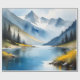 Beautiful oil painting of snow capped mountains and a lake