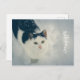 Postcard "Friendship will keep you warm in winter". Cute black and white cat with with rose nose on snow for pet lovers.