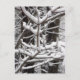 A branch from a tree reaches upwards holding a couple of inches of snow along all its twigs. One heavy footstep below and you'll be covered with snowflakes. The main branch starts in the lower left corner of the winter photo and angles towards the center where it goes vertical and then splits into a Y with smaller branches reaching each of the upper corners of the image.