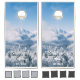 Cornhole set with a beautiful photo of snow-covered mountains and pine trees. Personalize with your family name, wedding/family est. date, or any text you choose.