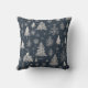 Embrace the winter charm with a throw pillow featuring white snow-covered trees and snowflakes against a navy blue background. This elegant accent piece effortlessly combines seasonal aesthetics with a sophisticated touch, adding a timeless and cozy ambiance to your home decor.