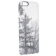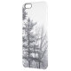 Immerse yourself in a winter wonderland with the vertical black and white photograph, Snow-covered Trees. The treetops form a strong diagonal with the tallest tree starting at the upper left corner of the image and the shortest tree at the bottom third of the right edge. The two trees on the left are evergreens while the rest are leafless deciduous trees; all are covered with snow. The sky above them is white.