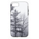 Keep your iPhone 8/7 safe from shocks with an impact resistant Case-Mate Tough case featuring a vertical black and white photograph of snow-covered trees. The treetops form a strong diagonal with the tallest tree starting at the upper left corner of the image and the shortest tree at the bottom half of the right edge. The two trees on the left are evergreens while the rest are leafless deciduous trees; all are covered with snow. The sky above them is white.