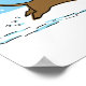 Happy drawing of a Wiener Dog running in the winter snow with snowflakes coming down. Cute holiday poster for Dachshund lovers. This cheerful design makes a fun Christmas gift for the sausage dog lover in your life.