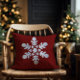 Deeply colored, dark red throw pillow, featuring a single, prominently displayed, large snowflake design. An ideal holiday gift, perfect for seasonal decorating and adding a touch of winter charm to any room. This festive pillow makes a thoughtful present.