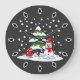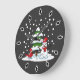 Snow Falling on Cardinal, Snowman and Pine Tree Large Clock