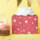 Modern and festive pattern features white "snow flurries" circles on red background