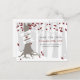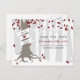 A winter wedding save the date postcard featuring an illustration of a tree a snowy forest. Tree has red, white, and silver leaves, exposed roots, and a trunk wrapped with banner that can be customized with bride & groom's names.