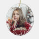 Snow Frame Minimal Two Photo Custom Name Script Ceramic Ornament
