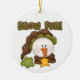 Snow Fun Snowman keepsake ornament features a snowman in a brown polka dot stocking cap and text that reads "Snow Fun!".