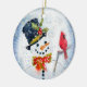 Snow Globe Snowman & Cardinal Ceramic Ornament
