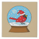 An illustration of a snow globe with a cute red cardinal wearing a red santa claus bonnet under a snow in a bright blue sky. This cute cartoon christmas waterglobe design is a gift idea for winter holiday lovers and, bird and animal lovers.