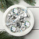 Snow in love winter bridal shower edible favors personalized Hershey's kisses, watercolor dusty blue winter berries on snowy pine branches snowflakes modern casual font personalized bridal shower favors mini chocolates