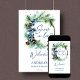 Snow in love winter bridal shower editable template welcome sign poster instant digital download, watercolor snowy pine wreath with pine cones and blue winter berries welcome sign personalized bridal shower winter themed entrance decor.
