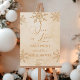This is a Gold Snow In Love Snowflake Winter Wonderland Bridal Shower Welcome Sign!