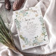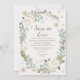 "Snow in Love" wedding invitations featuring winter floral, gold and silver snowflakes, and leaves.