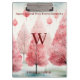 Snow-kissed Pink Winter Forest Serenity Monogram Clipboard