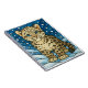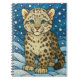 Snow leopard cub in snow, stained glass art notebook