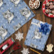Snow Leopard Snowflakes Blue Flowers Wrapping Paper