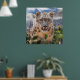 SNOW LEOPARD SPRINGTIME FLOWERS POSTER