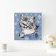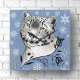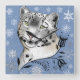 Snow Leopard Winter Elegance Blue Snowflakes Square Wall Clock