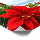 A magical winter landscape featuring a Snow Maiden dressed in a blue gown interacting with a deer. Snow-covered mountains and festive decorations enhance the seasonal and peaceful atmosphere.