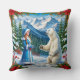 Snow Maiden with Festive Decor and Polar Bear Throw Pillow