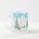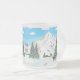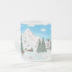 Winter scene with snowy mountains, rustic cabin and a buck overlooking the valley below him. Original artwork by W.B.