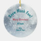 Here's an adorable Christmas ornament for a special granddaughter, grandson, son or daughter. On one side is the image of a cute smiling kitty cat wearing a pink and blue scarf and mittens. There are matching snowflakes and boho decorative items all around the kitty. The back of the ornament has a pretty silver snowflake background with your custom text. Currently it says "Snow Much Fun!" with your child's name and your signature, but all the text may be easily changed.