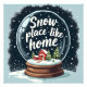 Celebrate the cozy charm of the season with this whimsical snow globe design featuring a classic red cabin nestled among snow-covered pine trees. Encased in a frosted glass globe, the heartfelt phrase “Snow place like home” floats above the serene winter scene, making it a perfect blend of holiday nostalgia and playful wordplay. The deep navy background sprinkled with falling snowflakes enhances the magical, nighttime ambiance, while the warm glow of the home invites feelings of comfort, warmth, and family togetherness. Ideal for holiday displays, seasonal décor, or gifting to winter lovers, this piece evokes the timeless joy of a snowy escape. Its storybook illustration style and clever typography bring a cheerful, welcoming energy that resonates during the holidays and beyond. AI generated artwork.