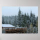 The first snowfall of the village in Whistler, B.C. Canada. Snow dusted trees and a glimpse of snow on a hotel rooftop...