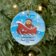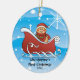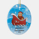 Baby's First Christmas Ornament features the cutest baby boy gingerbread man in a red sleigh set on a snow filled background. Personalize with your baby information and date and you're all set to go! Wonderful dated keepsake gift for your baby's 1st christmas.