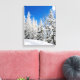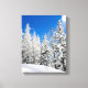 Canvas print of snow on the trees under a blue sky in a ski resort area in winter on a clear sunny winter day.