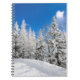 Notebook with snow on the trees under a blue sky in a ski resort area in winter on a clear sunny winter day.