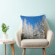 Throw pillow with snow on the trees under a blue sky in a ski resort area in winter on a clear sunny winter day.