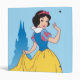 Snow White looking back over her shoulder with the castle silhouette in the background.