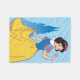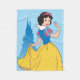Snow White looking back over her shoulder with the castle silhouette in the background.
