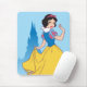 Snow White looking back over her shoulder with the castle silhouette in the background.