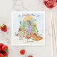 These magical and enchanting custom party napkins feature a colorful Snow White princess fairy tale theme. A golden magic mirror is placed in the center with a sample photograph inside. You can personalize the napkin to include your own photo or other custom image. Gold glitter dust surrounds the mirror. Sweet baby forest animals and birds are placed around the mirror, along with pretty red roses and vines. A shiny red apple is placed below.