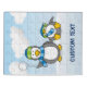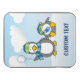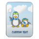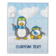 A little penguin cartoon with snowball and a fainted one. Custom text.