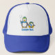 A little penguin cartoon with snowball and a fainted one. Custom text.