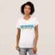 The material is a great quality that is hard to find with most tee shirts. Fabric was not see-through or thin at all, but was also very soft and comfortable. The shirt description states that it runs a little small, so I sized up one size for a perfect fit! I would definitely buy this type of tee shirt again because I love the fit and high quality fabric that I cannot find anywhere else. The printing was perfect and just as pictured. Loved the cute quote and really enjoy the tee in both the quality and design. I love quirky typography designs and funny quotes and I am extremely pleased with the overall quality and value I get at Zazzle!