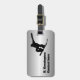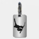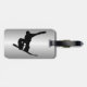 Luggage tag with snowboarder image. Silver gray color with snowboarding design on both sides. Customize with black printed text on one side, with name and / or contact information. Masculine black and gray works for a teenager or man.