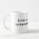 This mug features artwork of a snowboarding jumping on one side, and the slogan 'rather be snowboarding' on the other.