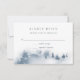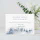 Designed to coordinate with our Snowbound wedding collection, this elegant winter RSVP card features a snowy forest scene with watercolor pine trees in blue and gray. Customize with your desired response date and custom accept and decline wording in classic blue-gray lettering.