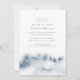 Elegant winter bridesmaids brunch invitation features a watercolor background depicting a snowy mountain landscape dotted with pine tree silhouettes in misty shades of blue and gray. Personalize with your bridesmaids brunch details in chic blue-gray lettering. A beautiful choice for elegant winter bridal brunches in mountain, forest