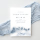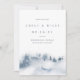 Elegant winter wedding save the date cards feature classic blue-gray lettering on a watercolor background of snow-covered hills dotted with pine trees in soft blues and grays. A chic choice for winter weddings in forest or mountain settings, these elegant flat save the date cards are easy to customize with your names, wedding date, wedding location, and website or an indication that a formal invitation will follow.